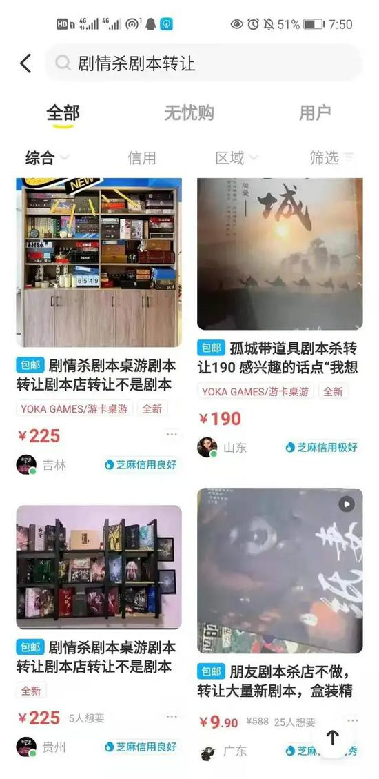 现在,在闲鱼上搜索“剧本杀”,你将会看到大量有关剧本杀的转卖消息。