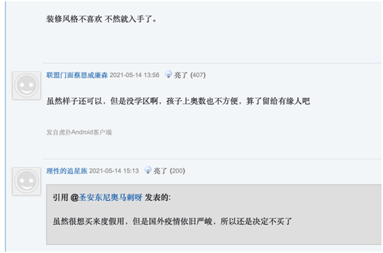 “虽然很想买来度假用,但是国外疫情依旧严峻,所以还是决定不买了”