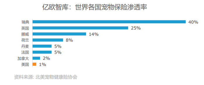 亿欧智库数据显示,美国近70%家庭拥有宠物,目前只有1%~2%的宠物猫狗拥有宠物保险,但相关数据表明,多年以来,美国的受保猫狗数量一直保持增多。中国的宠物保险投保率不到1%,保险种类也并不丰富。据分析,两大宠物保险市场具有一定相似性,但美国宠物保险市场目前已经出现相对成熟的产品及服务,可以视为中国宠物保险市场发展的下一个阶段。