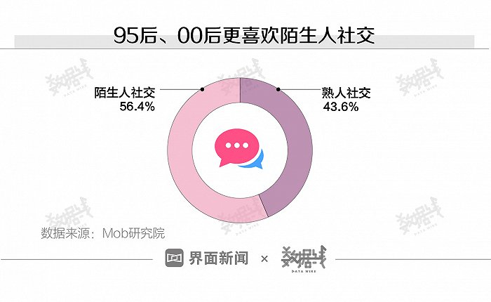 比起熟人社交,“95后”、“00后”更喜欢陌生人社交。他们希望找到有共同兴趣爱好的陌生人,寻求同龄人的认同感。