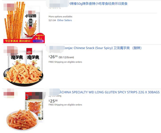亚马逊网站上,某品牌辣条被卖到了上百元一包: