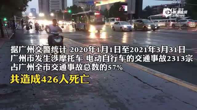 据广州交警统计,2020年1月1日至2021年3月31日,广州市发生涉摩托车、电动自行车的交通事故2313宗,占广州全市交通事故总数的57%,共造成426人死亡。