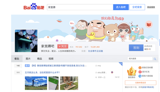 在百度贴吧上,有75万人关注了‘家里蹲吧’,帖子以千万计。