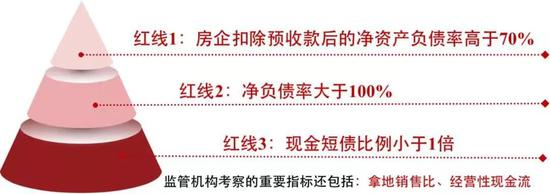 去年,房企迎来“三道红线”的政策限制,具体为红线1:剔除预收款后的资产负债率大于70%;红线2:净负债率大于 100%;红线3:现金短债比小于1倍。