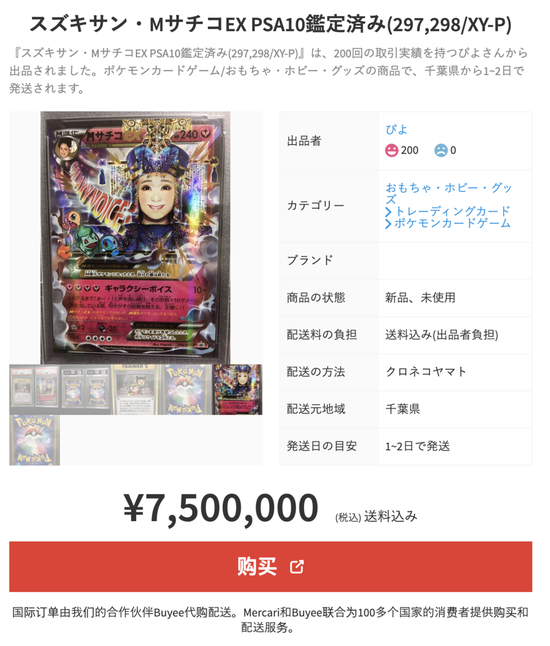 比如,在2020年7月,一张由皮卡丘创造者、画家西田敦子绘制的CoroCoro漫画插图大赛优胜者的限定卡牌(PSA 评级9分),就被一位不愿透露姓名的美国买家以23.3万美元的价格从日本电商平台Zenplus买走。