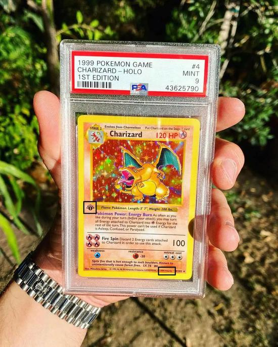 最能反映这个市场景气趋势的证据,就是1999年生产的初代第一版卡包里全息喷火龙闪卡,我愿将它称之为“喷火龙指数”。