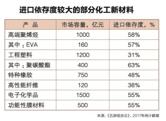 化工行业是我国主要工业门类中极少数严重依赖进口的行业,每年因缺乏技术而进口的化工新材料和高端专用化学品约6000亿元。