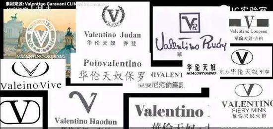 相比眼下“伪日系”品牌的风靡,前些年仿欧美风更加流行。华伦天奴世家、华伦天奴·杰尼亚、华伦天奴·路易、华伦天奴GV等多达两百多个“华伦天奴”,生生把国际奢侈品牌 Valentino Garavani 逼得不敢用中文名出镜。