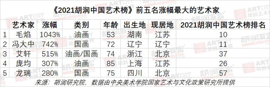 2021胡润中国艺术榜:100位上榜艺术家总成交额32.4亿元 比去年增长9%