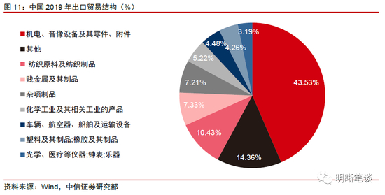 对比中国和东盟部分成员国的出口结构,再结合2020年各国出口情况判断,我国与东南亚国家主要在机电品类和纺织品类领域存在出口竞争关系。以疫情前(2019年)我国的出口贸易结构为参考,机电类产品占比高达43.53%(“电机、电气、音像设备及其零附件”+“核反应堆、锅炉、机械器具及零件”),其次为纺织、贱金属及其制品、化工产品、塑料产品等。对比东盟整体以及部分成员国的出口贸易结构,我国与东南亚国家在纺织品类和机电品类领域存在一定的竞争与替代关系,其中纺织产品是典型的劳动密集型产品,而我国的机电产品正处于从劳动密集型产品向资本密集型,甚至技术密集型转变的过程中。因此我们认为此次东南亚疫情的爆发背景下,我国出口的替代效应在上述两个品类中仍然有所延续。