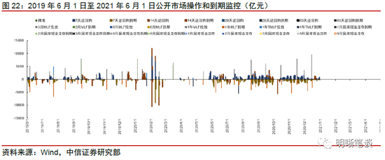 我们对市场流动性情况进行跟踪,观测2017年开年来至今流动性的“投与收”。增量方面,我们根据逆回购、SLF、MLF等央行公开市场操作、国库现金定存等规模计算总投放量;减量方面,我们根据2020年12月对比2016年12月M0累计增加16010.66亿元,外汇占款累计下降8117.16亿元、财政存款累计增加9868.66亿元,粗略估计通过居民取现、外占下降和税收流失的流动性,并考虑公开市场操作到期情况,计算每日流动性减少总量。同时,我们对公开市场操作到期情况进行监控。