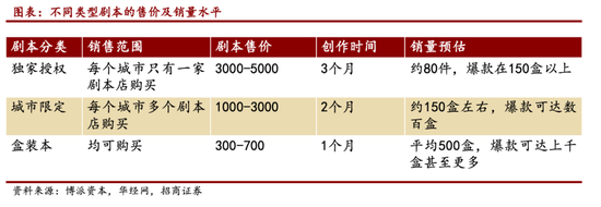在剧本杀行业,剧本分为盒装本、城限本和独家本。盒装本价格大多在几百元,制作水平良莠不齐,剧情重复的情况很普遍。城限本、独家本才是一家剧本杀店软实力的象征,但通常城限本一座城市只有三家店会有,商家购买价格在2000元左右,独家本则是一座城市只有一家店才有,价格在4000元到5000元。