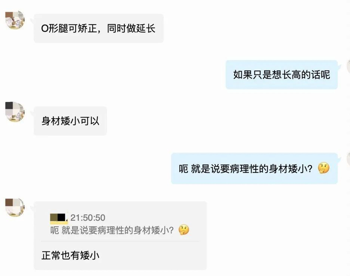 这名刘医生解释道,所谓“限制性手术”,其一,是必须在三级以上大医院做,其二,是要以矫正O型腿等正畸为病由,顺便“同时做延长”。