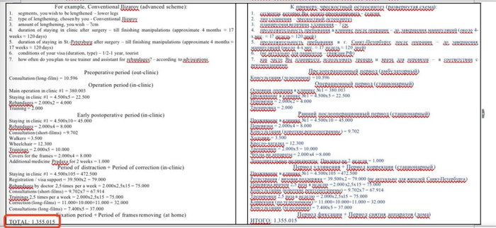 网传的一份俄罗斯增高手术机构从手术到护理的介绍word文档,手术费用宣称为135万人民币