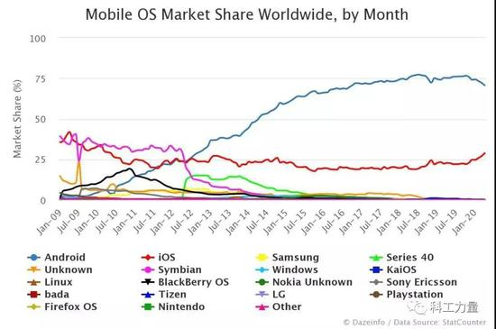 (2012年后,智能手机操作系统的战国时代正式结束,安卓,iOS两极格局确立)
