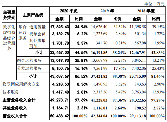 蜂助手的业务包括数字化虚拟商品综合运营、物联网应用解决方案及技术服务三大板块,前者又划分为聚合运营、融合运营及分发运营服务三个类别。