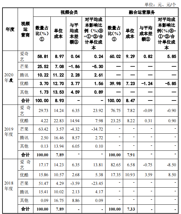 蜂助手的视频会员和融合运营服务单位成本情况