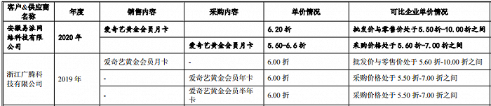 又比如,蜂助手2019年向北京爱奇艺科技有限公司的采购金额为8036.64万元,主要是采购影视会员;2020年改为向深圳硕软技术有限公司等公司采购爱奇艺会员。