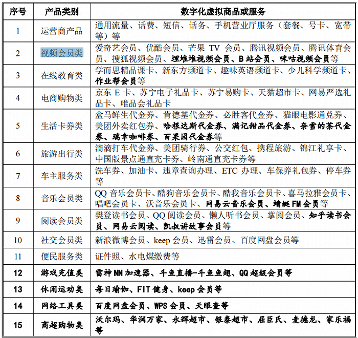 蜂助手业务的数字化虚拟商品主要类型