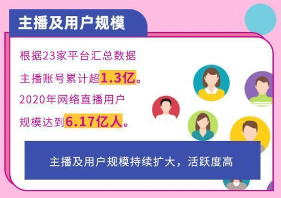 当然,这个行业并不乏高薪人群,薇娅、李佳琦等头部主播吃到了巨额红利,罗永浩还声称今年目标收入至少100亿元。要知道,2020年网络直播用户规模达到6.17亿人,占中国网民整体的62.4%。此外,电商直播用户在2020年快速增长,达3.88亿人。就算不带货,只是各大平台的头部内容自媒体,也享受过这场“网红”盛宴。