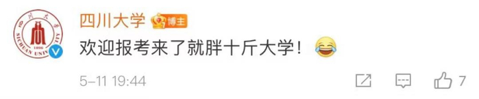 在致力于让学生长胖这件事上,DT君只能说川大官博的新生欢迎辞,实至名归。