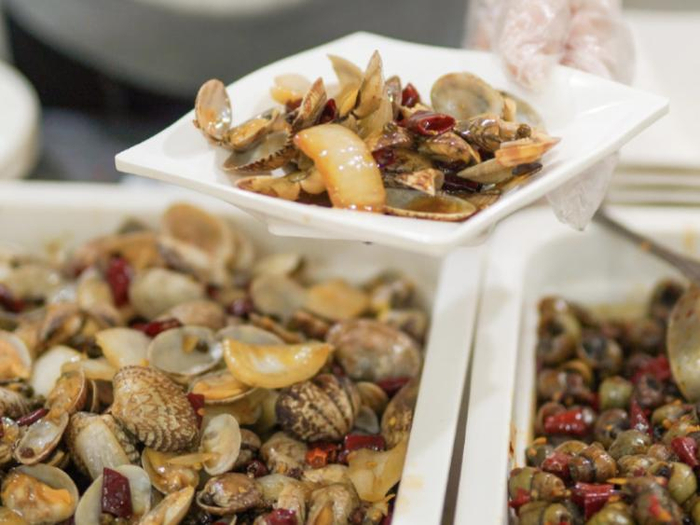 拿最近的川大‘夜宵节’来说,每晚七点,川大三个校区的食堂小龙虾、炒花甲、炒蛏子、干锅鸡鱼、各类卤菜轮番登场。不能吃辣?没关系。师傅为你独家定制了蒜香、鱼香口味的菜品,更有凉粉、冰浆桂花冻做饭后甜点。