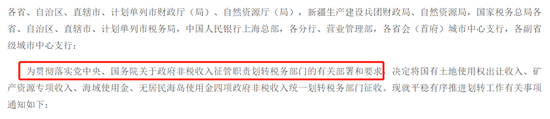 整个《通知》一共有九条,第一条就直指重点:将由自然资源部门负责征收的国有土地使用权出让收入、矿产资源专项收入、海域使用金、无居民海岛使用金四项政府非税收入(以下简称四项政府非税收入),全部划转给税务部门负责征收。