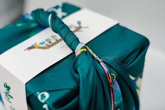 用丝巾做包装,上面系着五彩绳