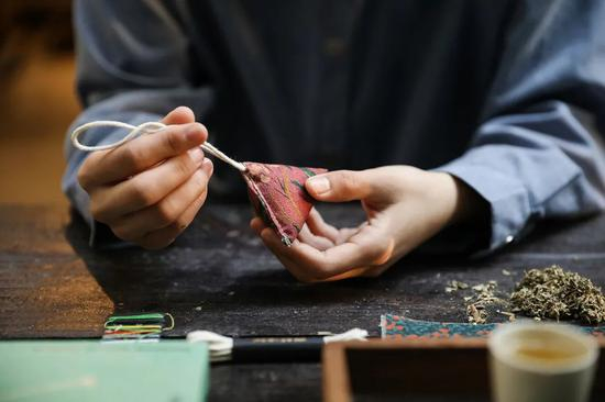 搭配有端午主题的徽章扣及薄荷香囊挂件