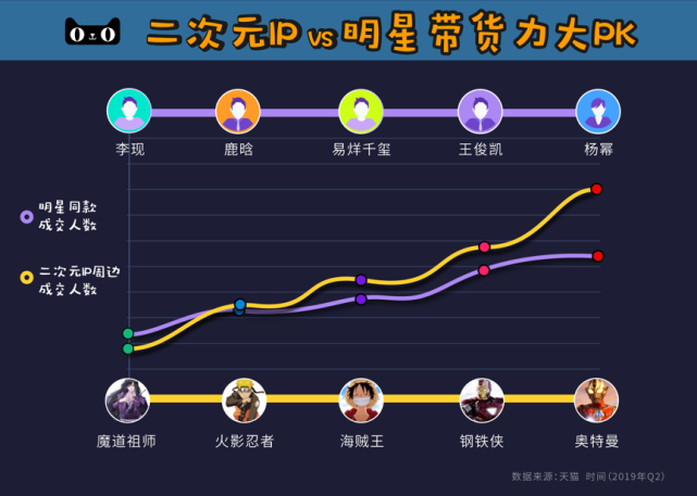 2019年,天猫曾发布过《二次元IP带货力》榜单显示,在最受年轻人欢迎的二次元IP中,奥特曼的带货实力Top1。数据显示,奥特曼周边在天猫的成交人数达到杨幂同款的2倍多。这可不能怪带货女王的实力太弱,实在是奥特曼的影响力太强了。