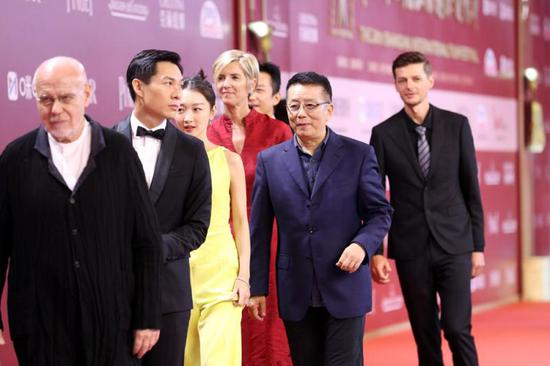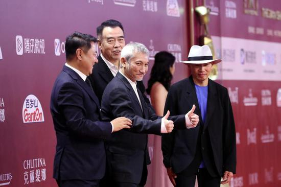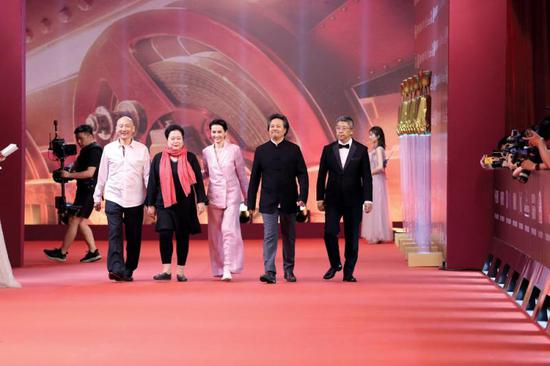 本届金爵奖评委会主席黄建新携众评委压轴红毯。