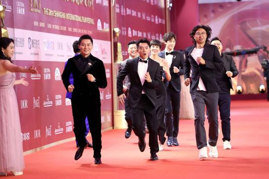 《只是一次偶然的旅行》剧组,窦靖童走上红毯。