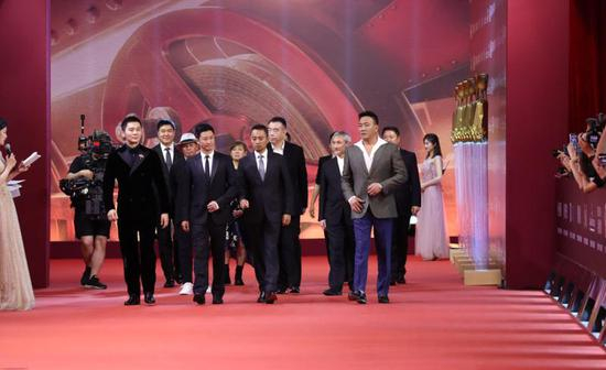 《长津湖》剧组,陈红、陈凯歌、徐克、林超贤、梁凤英、吴京、李晨、 胡军走上红毯。