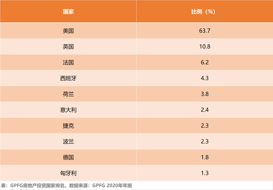 2020年,房地产资产占基金的3.8%,但去年的投资回报是-5%。从房地产投资的分布可以看出,GPFG的投资主要在发达国家的主要城市,并没有在中国和东南亚高速发展的房地产市场进行布局。