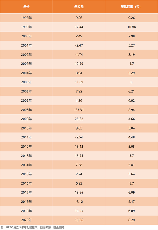 从 1998 年 1 月 1 日到 2020 年底,该基金的年回报率为 6.3%,年净回报率为 4.4%。