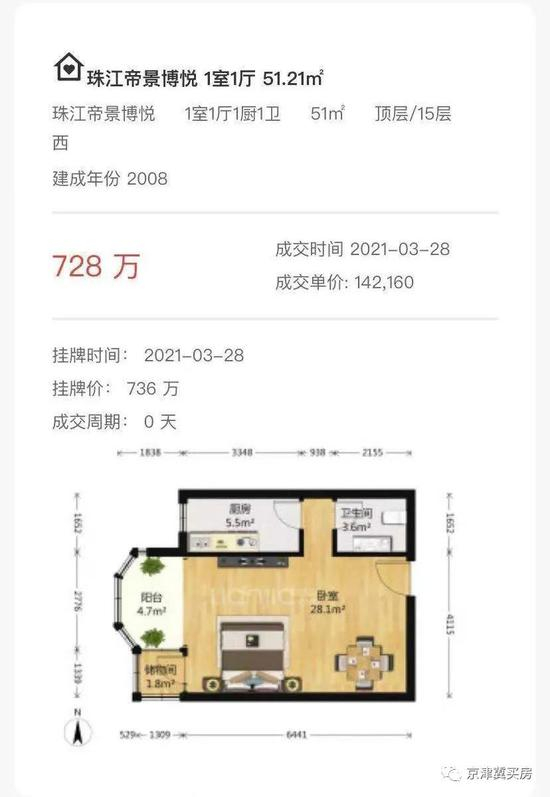 其中有一套珠江帝景小户型51平顶层一居室,以14.216万元成交,总价728万。小二估计应该是当年急于上学买的。