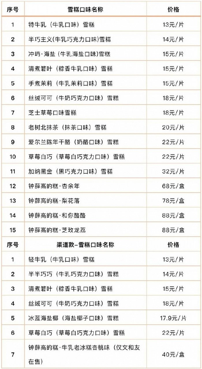 景区里,一支黄鹤楼雪糕15元,一支东方明珠雪糕19.9元,一支樱花雪糕29元,一支城墙雪糕25元。景区外,十几元一支是中街1946和钟薛高的常态,最便宜的雪糕都不低于10元。