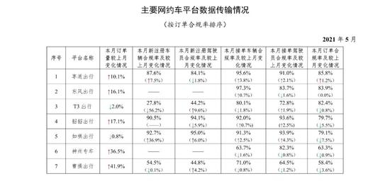 原标题:网约车监管信息交互平台发布5月份网约车行业运行基本情况