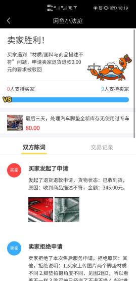 之后,买卖双方可以提交图片、交易证据到系统上,再由陪审员根据证据投票,最先获得9票的一方获得胜利。