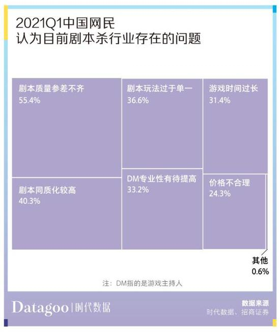 除此之外,线上剧本杀还面临着由于线上平台剧本大部分来自玩家投稿,存在剧本质量参差不齐以及线上体验不稳定、嘈杂的周边环境导致沉浸感较差等诸多问题。