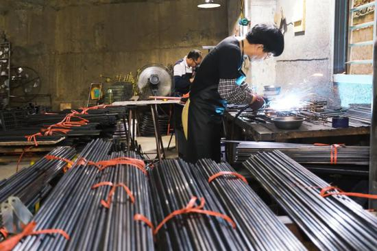 “我小时候就懂这些技术,毕竟当过学徒嘛。原来做外贸,工艺要求已经很高了,我们当时做鸟笼,狮子、猫头鹰雕像,这些技艺复杂,转向内销家居时都能用到”,张注福说,他看到的是更广阔的的家居场景,这些都建立在原来的铁制品技术之上。