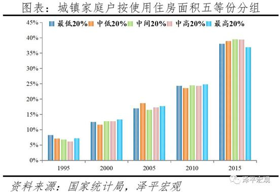 其一,住房困难的家庭户比例明显下滑。1995-2015年人均住房建筑面积在8平方米以下的家庭户数占比从12.6%降至3.3%,人均9-16平方米的家庭户数占比从35.3%降至11.9%。