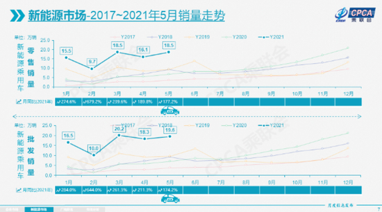 乘联会数据显示:今年1-5月份,乘用车零售累计达到836.4万辆,同比增长38.1%。而新能源车1-5月零售量77.6万辆,同比增长235.7%。中国汽车工业协会常务副会长兼秘书长付炳锋预估,预计未来五年我国新能源汽车产销增速将保持在40%以上,到2025年,我国新能源车销量占比将达到20%-30%。