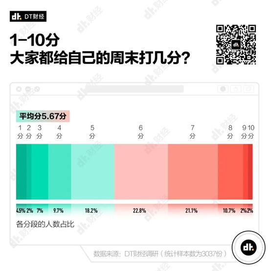 DT君曾在上个月发布一份‘国产青年周末怎么过大调查’,在回收到的 3037 份有效问卷中,我们发现,以 10 分为满分,年轻人对自己周末的评价平均只有 5.67 分,有超过四成的人打了不及格。
