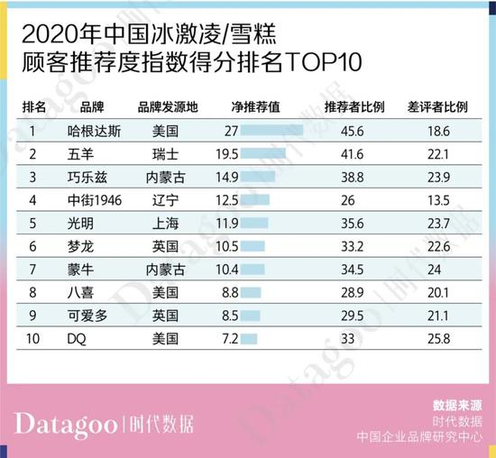 根据中国企业品牌研究中心数据显示,2020 年我国冰激凌/雪糕顾客推荐度指数得分排名中,钟薛高未在前十排名中。