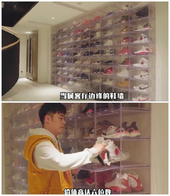 而“鞋墙”让鞋盒更加出圈。如果说女孩子的梦想是拥有各种款式的包包,那么男孩子的梦想大概是拥有一面装有各种球鞋的“鞋墙”,用“规模化”的效果满足自己在收藏中获得的快乐。吴一表示,自己是一名资深球鞋爱好者,最近刚从网上抢到一双新球鞋和一款联名版鞋盒,打算录一个开箱视频,自己的最终梦想就是在家里搭建一面“鞋墙”,展示多年以来收藏的球鞋。在社交平台上,也可以看到各种球鞋博主以自己的鞋墙为背景进行球鞋展示。明星陈赫也是球鞋爱好者,他也曾晒出了家里价值不菲的鞋墙。