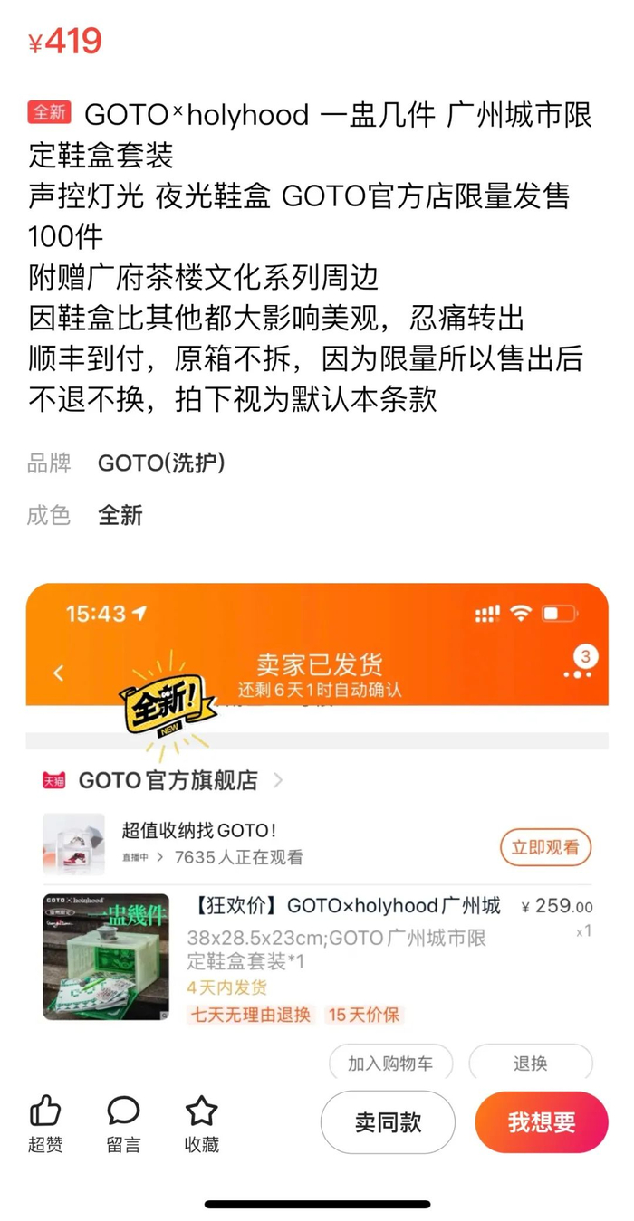 公开资料显示,早前在李佳琦直播间内,潮流鞋盒GOTO上架仅3分钟,6万个鞋盒便被一抢而空。