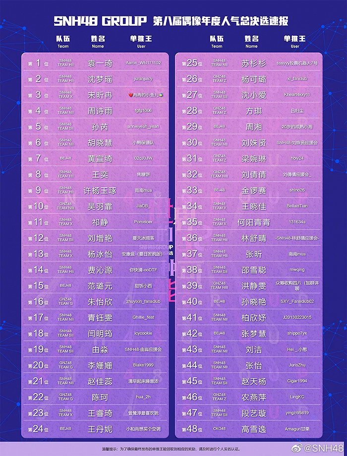总选的这几个排名最受关注:Top1花落谁家,谁是被称为“选拔守门员”的Top16,以及压线进圈的Top48属于哪个幸运儿。而卡位圈竞争激烈的同时,也意味着其他位置成员的后援会投票压力较小,粉丝可以保留实力。