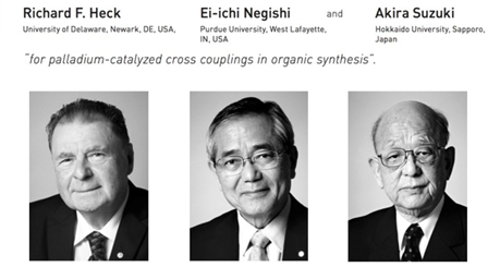 熟悉高等有机化学的人可以轻松举出不少钯催化的有机合成人名反应,很多有机合成大师也都是使用钯催化剂的高手。其中,理查德·赫克(Richard F. Heck)、根岸英一(Ei-ichi Negishi)和铃木章(Suzuki Akira)三人还因对“有机合成中的钯催化交叉偶联反应”作出的突出贡献,荣获2010年诺贝尔化学奖。