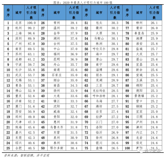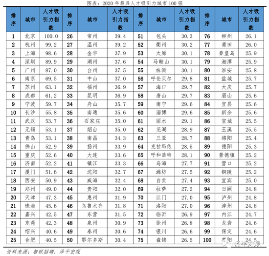 原标题:中国城市人才吸引力排名:2021